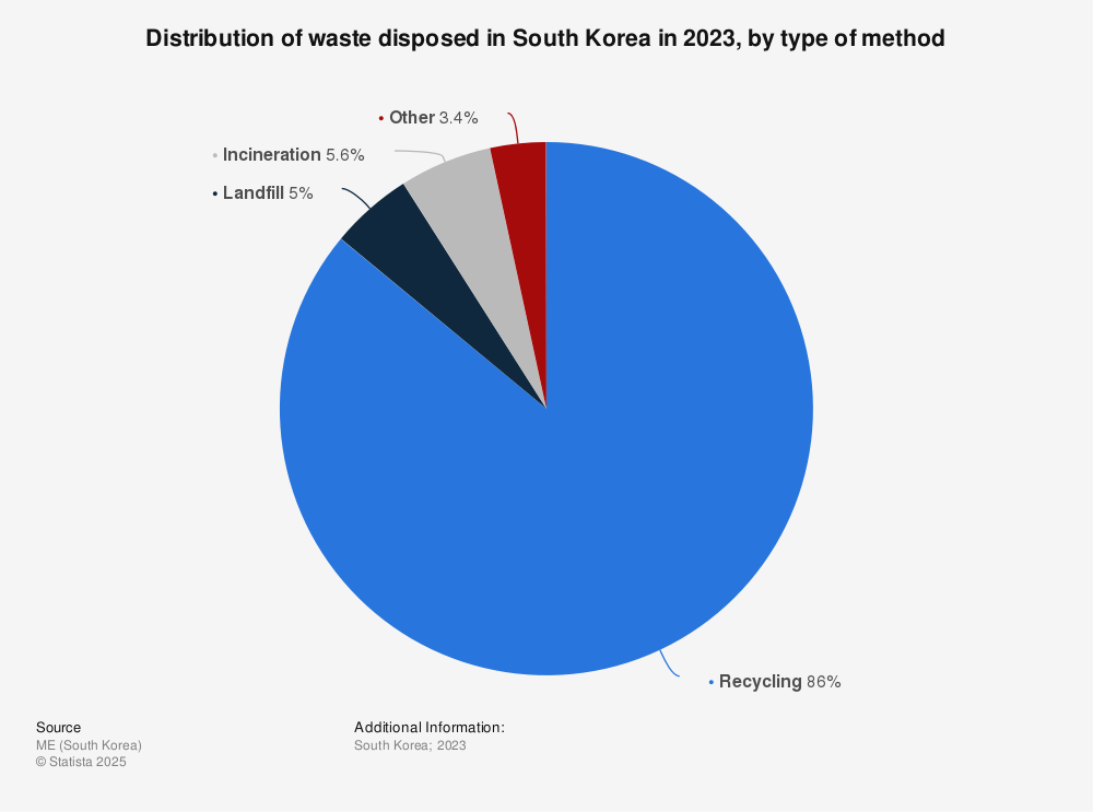 Mentioned before in the Mapo Facility post, Seoul has a pretty good trash disposal system, which they reuse waste to compost, create parks, and create energy. If we simply compare the recycling rates of the two countries we see that the recycling rate for South Korea is extraordinarily higher. In fact South Korea recycles 3x more of their waste than the U.S. and only 5% of their waste ends up in landfills whereas the U.S. is 10x worse in that category. In fact Korea is so good at recycling that the U.S. and Japan ship thousands of tons of waste to be recycled there every year. It’s okay for the U.S. to ship its waste to other countries if it’s handled properly. However, it is not acceptable for U.S. one of the largest producers of waste to have 50% of their waste end up in landfills.